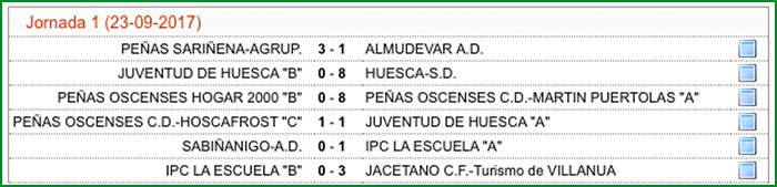 Resultados de la jornada 1 en Juveniles: