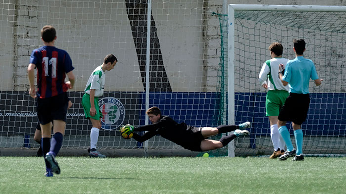 En el primer minuto de encuentro la S.D. Huesca ya dejó claras sus intenciones mandando un buen disparo al larguero de la portería peñista.