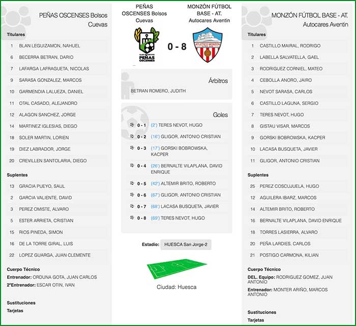 C.D. Peñas Oscenses B-BOLSOS CUEVAS |0 – 8| Monzón Fútbol Base A