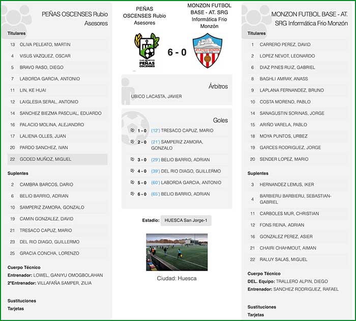 C.D. Peñas Oscenses A-RUBIO ASESORES |6 – 0! Monzón Fútbol Base B