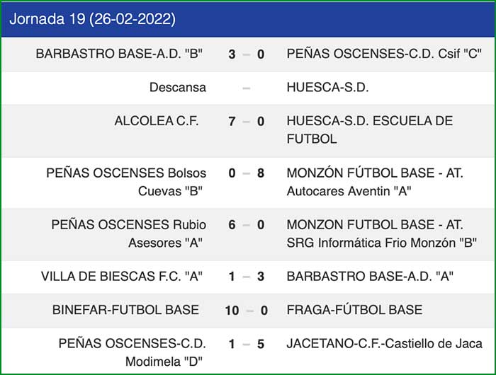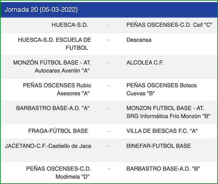 Doble enfrentamiento en las categorías base entre el Monzón y el C.D. Peñas Oscenses celebrados a las 12:15 horas en los campos de San Jorge correspondientes a la jornada 19 de liga.