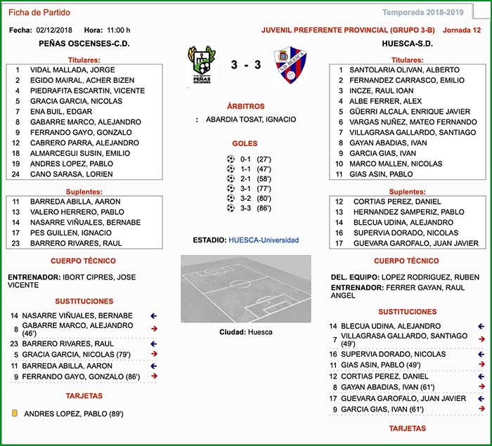 Fuente de los datos de la Ficha Técnica: Federación Aragonesa de Fútbol.