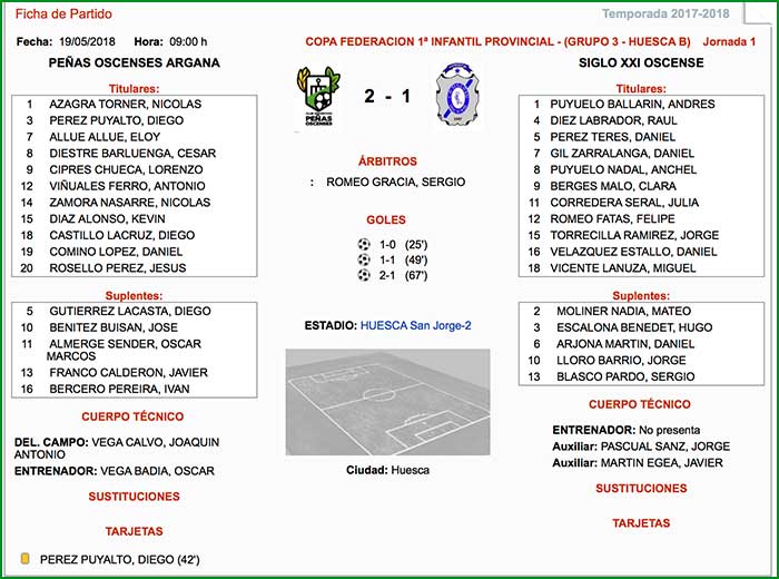 Fuente de los datos de la Ficha Técnica: Federación Aragonesa de Fútbol.