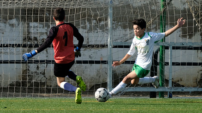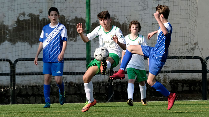 La primera parte fue para los locales que con un juego serio en defensa y buscando la espalda de los azulones consiguieron crear varias ocasiones de peligro, entre ellas un mano a mano errado por Cesar y dos palos de Jesús y Lorenzo. En el minuto 25 llegaría el primer gol para los peñistas, tras un golazo de José Benitez, que se adelantó por velocidad a la salida del portero y definió a la perfección.