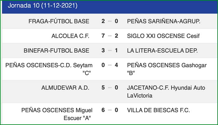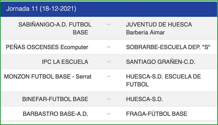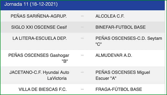 La jornada del día 11 de diciembre de 2021 en ambas categorías.