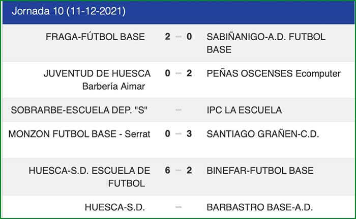 Encuentro correspondiente a la jornada 10 de liga celebrado el día 11 de diciembre de 2021 a las 12 horas en el campo 1 del C.M.F. San Jorge de Huesca.