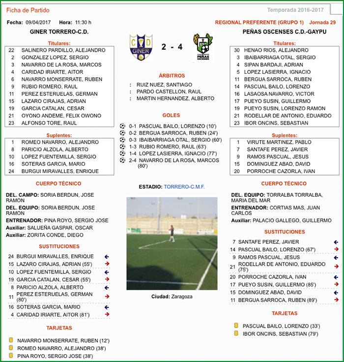 Fuente de los datos de la Ficha Técnica: Federación Aragonesa de Fútbol