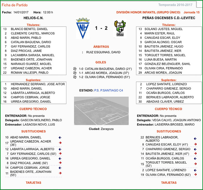 Encuentro correspondiente a la jornada 15 de liga, celebrado el día 14 de enero de 2017 a las 12 horas.