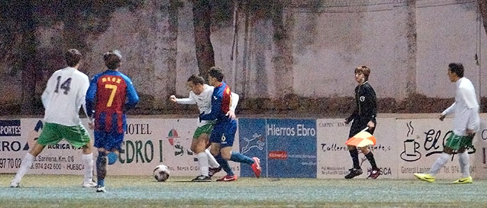 Partido bastante igualado en la fría tarde de San Jorge que acabó llevándose el Oliver, ante un Peñas que acabó el encuentro con un jugador menos ya que Sarasa en el minuto 75 fue expulsado al recibir la segunda cartulina amarilla.