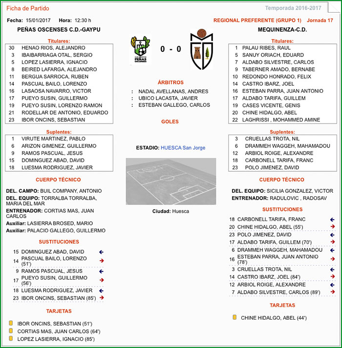 Fuente de los datos de la Ficha Técnica: Federación Aragonesa de Fútbol.