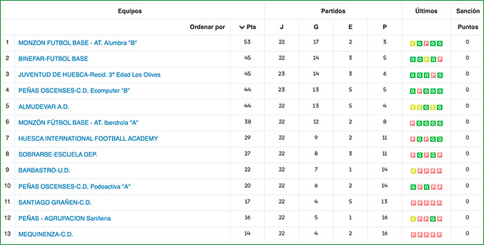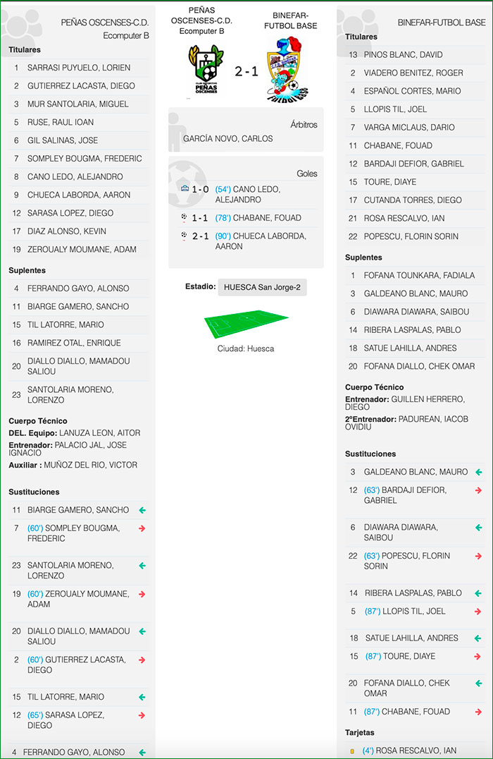 Fuente de los datos de la Ficha Técnica: Real Federación Aragonesa de Fútbol.