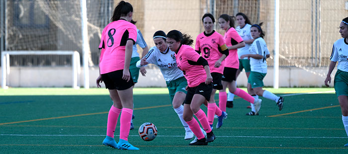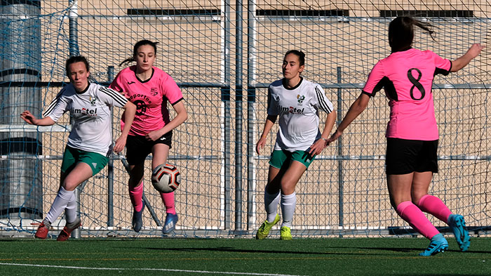 Las peñistas poco a poco se fueron hacia arriba buscando la portería contraria con el condicionante antes mencionado del viento en contra.