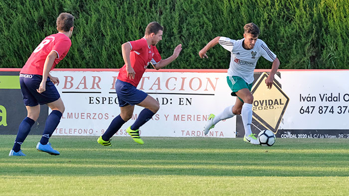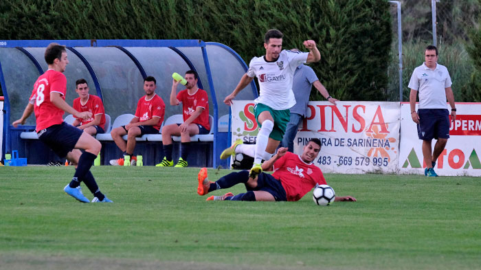 Seguirían unos minutos en los que se nota en los peñistas la altura de la pre-temporada, pues se tienen algunas impresiones en el pase, de las que se aprovecha el equipo local para llegar con peligro a las proximidades de la portería defendida por Viruete.