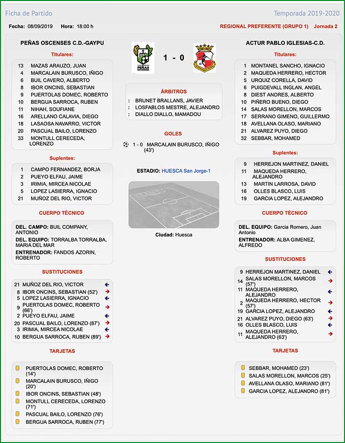Fuente de los datos de la Ficha Técnica: Federación Aragonesa de Fútbol.