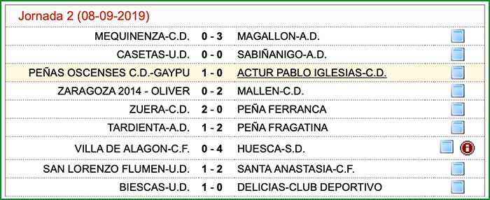 Encuentro correspondiente a la jornada 2 celebrado el día 8 de septiembre de 2019, en el campo 1 del C.M.F. San Jorge de Huesca, a las 18 horas y con ligero viento cruzado.
