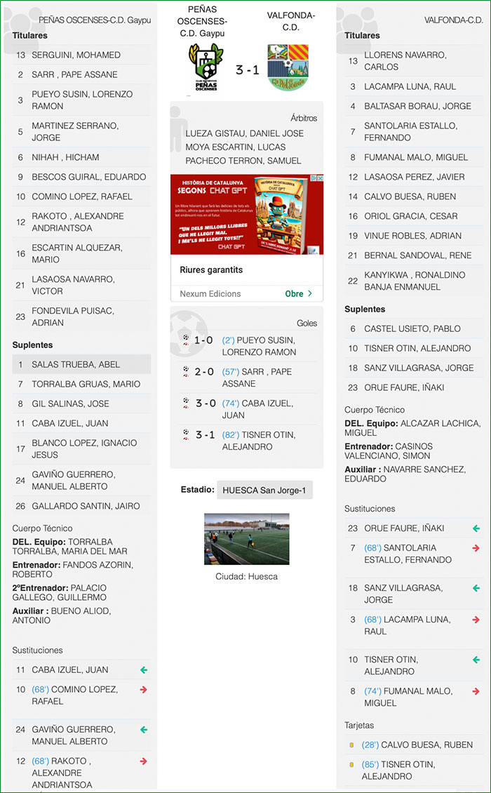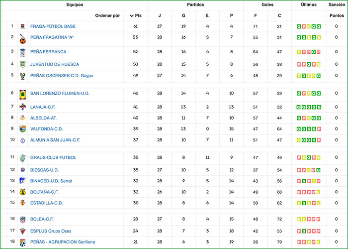 Fuente de los datos de la Ficha Técnica: Real Federación Aragonesa de Fútbol.
