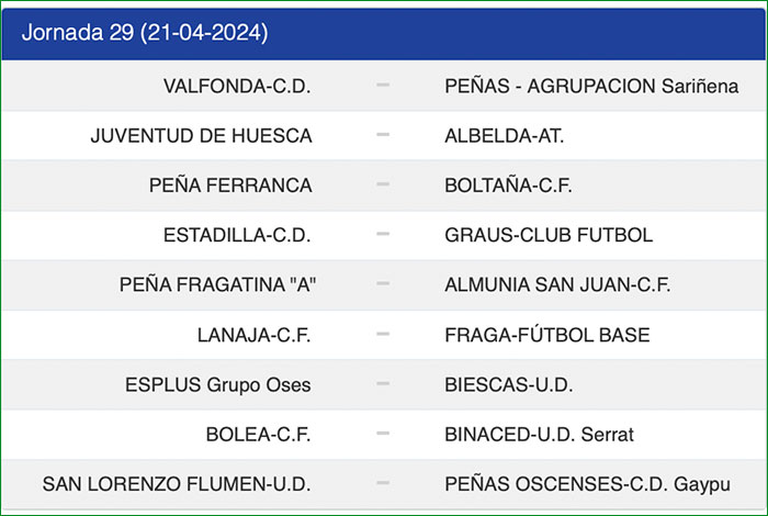 Partidos para la jornada 29: