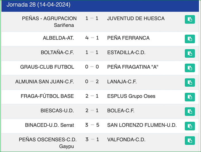 Resultados de la jornada 28: